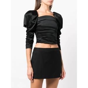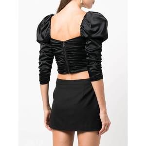 Lining: 94% polyester/6% elastane,Fabric: Lightweight, super-stretch charmeuse,Square neck and 3/4 length sleeves, Ruching details, Cropped profile,Length: 16.25in / 41cm, from shoulder,Hidden zip at back.