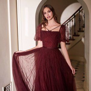 NEW A-LINE TULLE DRESS WITH LACE UP BACK EMBROIDERED WITH RHINESTONES CD B712