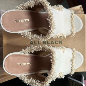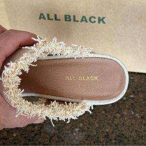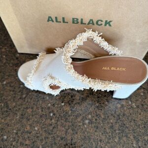 NEW - ALL BLACK Brand - Cute Cream Mules w/ Chunky Heel & Frayed Edges - Size 10