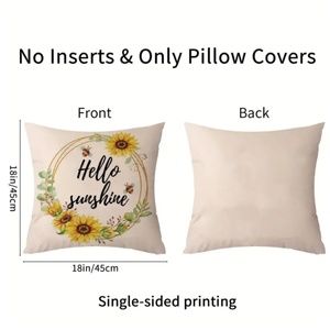 NEW ALL SEASONS HELLO SUNSHINE SUNFLOWER BEES FLORAL DECORATIVE PILLOW COVER 18"