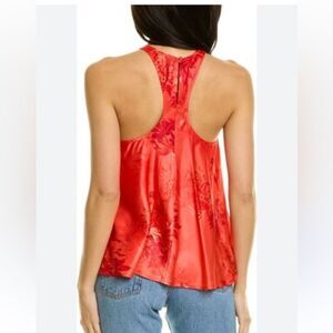 A kissed-with-silk halter top features a vibrant tropical print and sleek racerback design that complements the flowy cut.