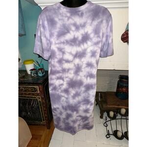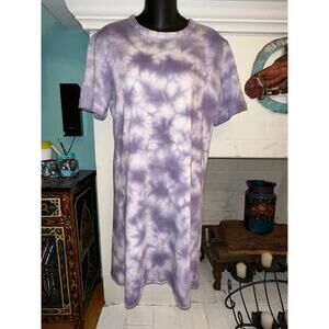 SUPER PRETTY LAVENDER AND WHITE TIE DYED TEE SHIRT DRESS OR SHORT SLEEVED SWEATSHIRT DRESS. SIZE XS. MEASUREMENTS IN PHOTOS. SOFT COTTON BLEND. BRAND NEW. VINTAGE BELT AVAILABLE SEPARATELY.