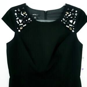 NEW ALYX Black Sheath Dress Jeweled Shoulders 12P Cocktail Party Petite Women