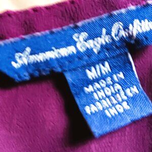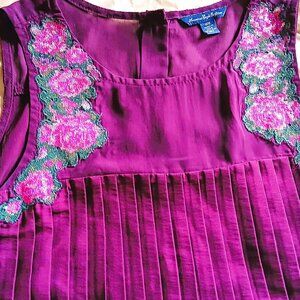 NEW! AMERICAN EAGLE OUTFITTER BURGUNDY PLEATED EMBROIDERED SLEEVELESS BLOUSE, M.