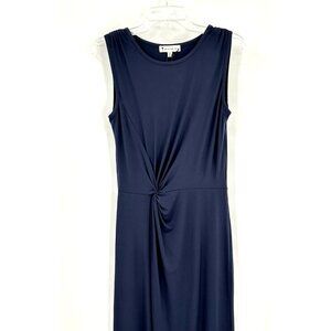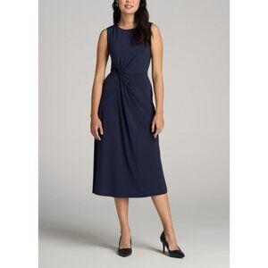 NEW AMERICAN TALL dress sleeveless knot front midi knit career navy blue MXT