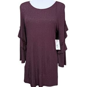 NEW ANA Stretchy Tunic Top Blouse Large Dark Purple Sparkle Ruffle Dressy Career