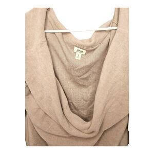 This ANA Women's Plus Size Fleece Big Cowl Neck Top with 3/4 Sleeves in Birchwood color is the perfect addition to your wardrobe. The top is made of a soft and comfortable blend of polyester and rayon fleece, making it ideal for any season. The light brown adds a touch of style to the plus-size top, which features a cowl neckline and puff sleeves.