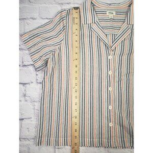 NEW A.N.A Women's Size Large Multi-Color Stripe Button Front Short-Sleeve Blouse