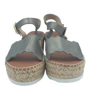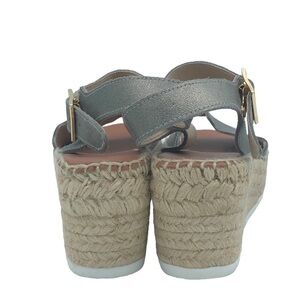 NEW ANDRE ASSOUS Cacia Pewter Leather Platform Wedge Espadrille Sandals Size 10