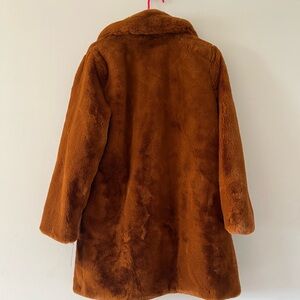 BRAND NEW WITH TAGS ~ LADIES SIZE MEDIUM ~ ANDREW MARC NEW YORK PLUSH FAUX FUR COAT JACKET WARM AND GORGEOUS BROWN TOBACCO COLOR RETAIL WAS $139 ~ PERFECT FOR FALL HAS 3 clasp closures. GORGEOUS