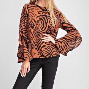 ANIMAL RUFFLED BELL SLEEVE TOP