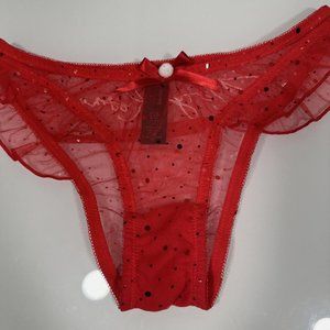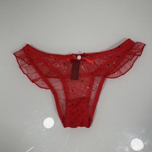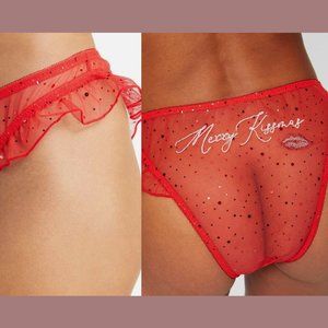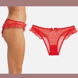 NEW ANN SUMMERS [ XS 0-2 ] Merry Kissmas Ruffle Mesh Panties In Red #T1634