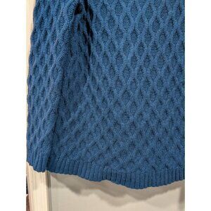 NEW ANN TAYLOR $198 SEA STORM BLUE MIXED MEDIA CABLE COATIGAN JACKET SZ LARGE. Please note all measurements are approximate.