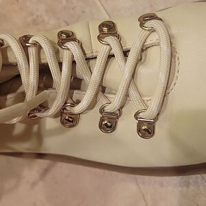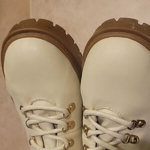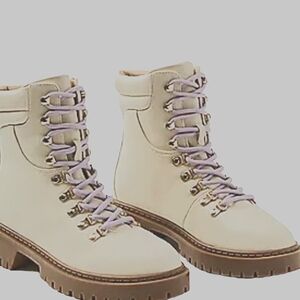 NEW! ANN TAYLOR LOFT Cream Faux Leather Hiker Hiking Ankle Boots 8.5.