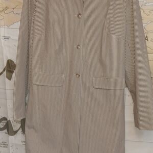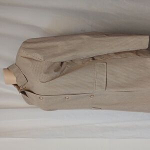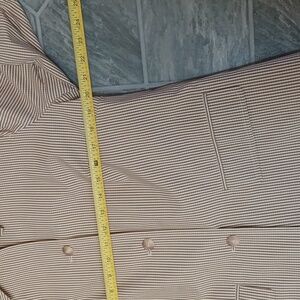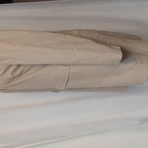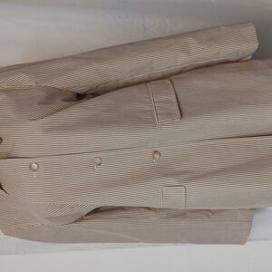 Elevate your wardrobe with this stylish striped tan jacket Blazer. Perfect for any occasion, this coat offers both comfort and elegance.