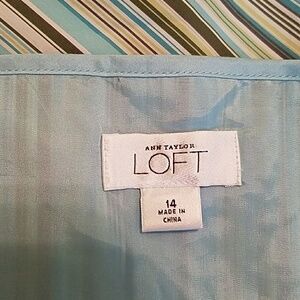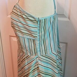 New without the Tags - Ann Taylor LOFT sundress with spaghetti straps. The dress is completely lined. The straps are adjustable. There is a side hidden zipper. The colors in the dress are blues, greens & white.