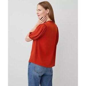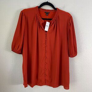 NEW ANN TAYLOR Womens XL Burnt Orange Button Up Ruffle Neck Blouse Shirt