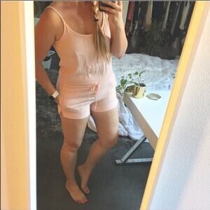 NEW ANTHROPOLOGIE Cloth & Stone Cream Pink Deep V Back Tank Shorts Romper Large