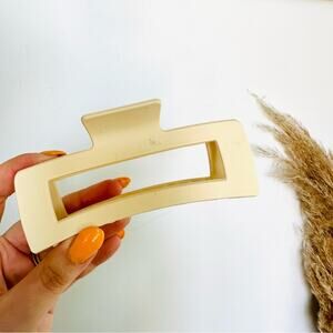 NEW ANTHROPOLOGIE Cream Jumbo XL Rectangular Open Matte Plastic Hair Claw Clip