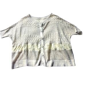 NEW ANTHROPOLOGIE Cream Tan Moth Crochet Button Lace Striped Sweater Top Small