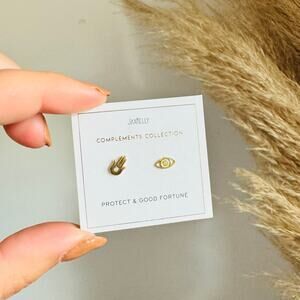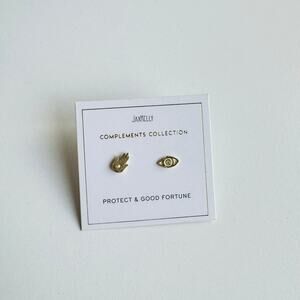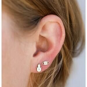 NEW ANTHROPOLOGIE JaxKelly 18kt Hamsa Hand Evil Eye Stud Earring Set Jewelry
