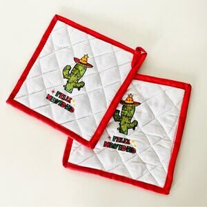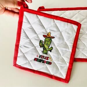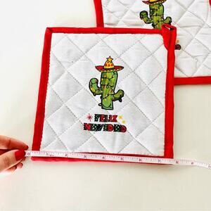 NEW ANTHROPOLOGIE Red White Feliz Navidad Cactus Christmas Holiday Pot Holders 2