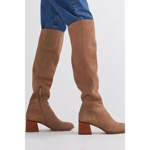 NEW ANTHROPOLOGIE X KELSI DAGGER Sz 7.5 IMAGE OVER THE KNEE BOOT SAND
