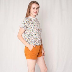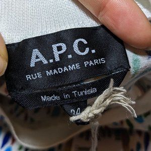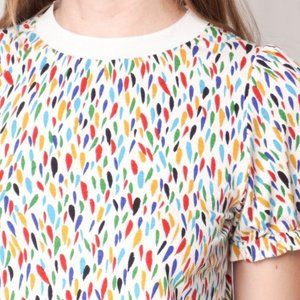 NEW A.P.C. Colorful White Drop Print "Paloma" Top Short Sleeve Shirt XS Size 34