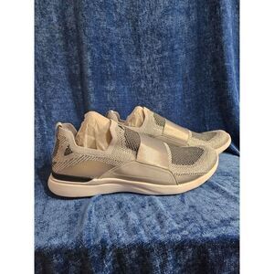 Brand new in box APL Athletic Propulsion Lab Techloom Bliss in metallic silver white and black, size 14. These fit a bit snug and will conform to your foot over time, best for size 13 or 13.5 TechLoom upper with rubber sole, Slip-on styling, Custom-milled satin elastic strap at top. Propelium is designed to maximize energy generation and provide superior comfort with Back pull-tab. MSRP $220