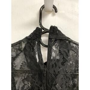 Partial lining at body. Allover sheer lace. 100% Polyester.