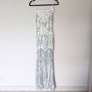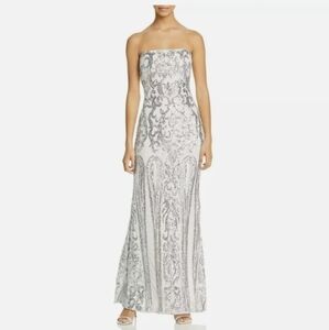 NEW AQUA White Silver Sequined Embellished Strapless Maxi Gown Dress