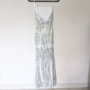 NEW AQUA White Silver Sequined Embellished Strapless Maxi Gown Dress #A20590