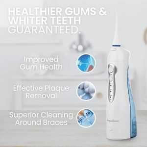NEW AQUASONIC White Water Flosser with 4 Tips & Travel Pouch