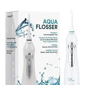 Brand new in box. Water Flosser is your best tool to maintain optimal oral health. Clinically proven to be up to 5x more effective than traditional string floss in maintaining gum and dental health. This device is also ideal for kids and those with braces and/or other dental treatments. A bonus of 4 color coded interchangeable tips and travel pouch are included.