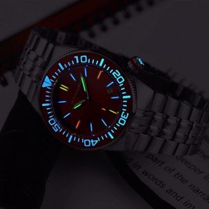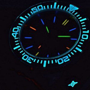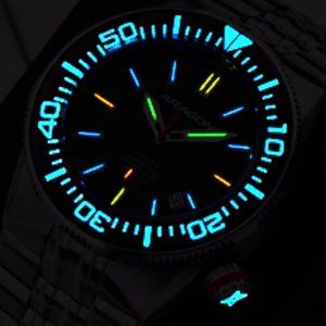 ARAGON TRITIUM watches have T-100 tubes that are filled with Tritium gas and hermetically sealed. The electrons of the gas tubes react with the phosphorescent coloring resulting in a radio-luminescent light source that glows constantly for 50 years! NO power source or charging by external light source is ever needed to maintain glow. The GLOW is completely self-powered! T-100 means there is 100mCi of Tritium gas in each tube of the watch whereas the majority of Tritium watches on the market..