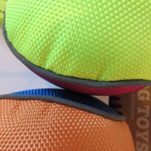 THESE BALLS HAVE TABS ON THEM TO MAKE THROWING EASIER AND ALSO TO ATTACH TO A CLIP, BELT, OR CARIBINER. THESE BALLS ALSO FLOAT SO IT MAKES WATER PLAY FUN.