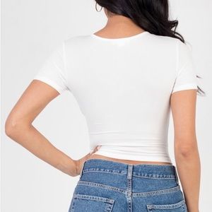 NEW ARRIVAL WOMEN RIBBED RED ORANGE SHORT SLEEVE RUCHED CROPPED TOP SHIRT