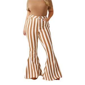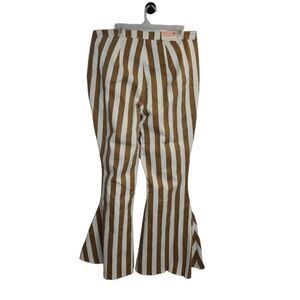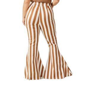 NEW ARULA brown and ivory striped Alden super flare high waist hippie jeans 16