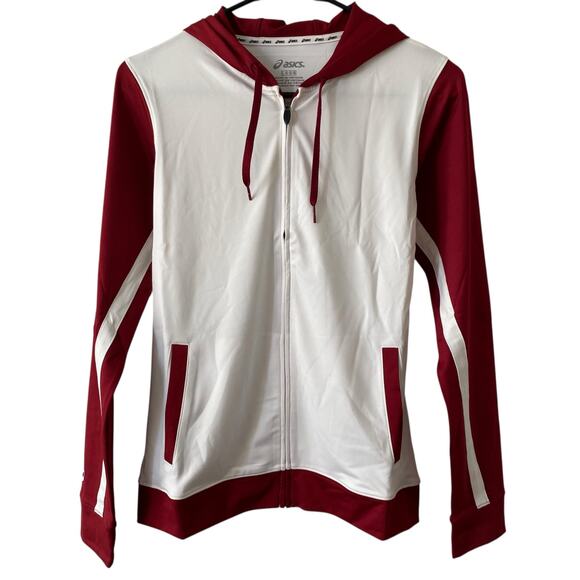 NEW ASICS Junior's Lani Track Jacket Size Large Red White Sports Full Zip Hood