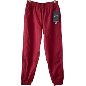NEW ASICS Junior's Upsurge Windbreaker Jogger Track Pants Red Size XL Athleisure Soccer Track & Field Sports Elastic Waist Pull On Styling Pockets