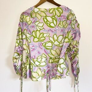 NEW ASOS Abstract Ruched Sleeves Satin Top Size 14