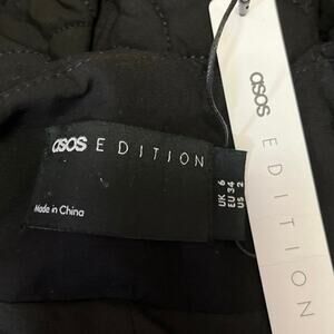 NEW ASOS Black Quilted Plunge Neck Balloon Sleeve Tiered Ruffle Hem Dress Size 2