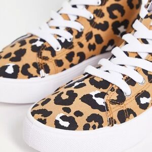 NEW ASOS DESIGN Daz canvas high top sneakers in brown and black leopard.