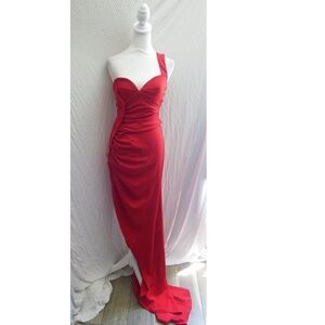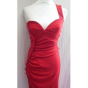 NEW ASOS DESIGN Red ONE SHOULDER Ruched SIDE BUTTON Maxi Dress GOWN US 4 (fit 2)