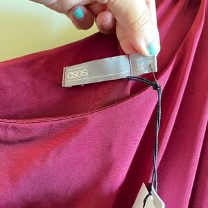 NEW ASOS METERNITY ONE SHOULDER MIDI DRESS WINE WOMENS SIZE 6 RUFFLE