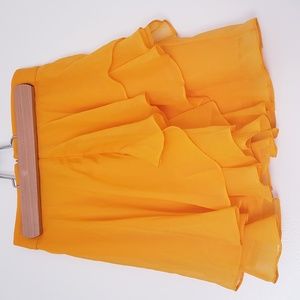 Cute and flirty asymmetric mini ruffle skirt in mango/tangerine color.