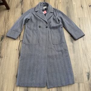 NEW ASOS The Frolic Herringbone Longline Coat Gray US Size 8 Maxi Length $170