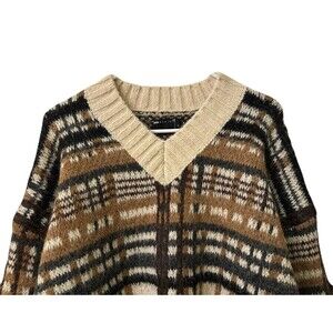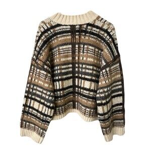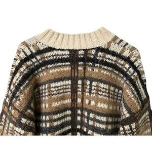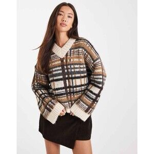NEW ASOS Womens Size Medium Brushed Mocha Plaid High V-Neck Wool Blend Sweater