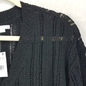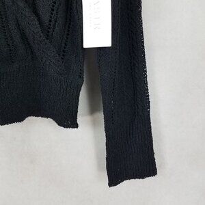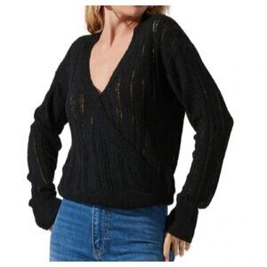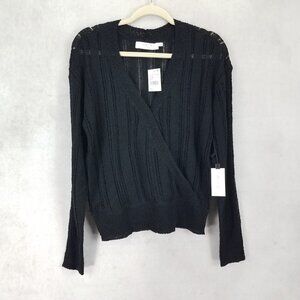 NEW ASTR L Faux Wrap V-neck Pointelle Knit Pullover Sweater Black NWT $79