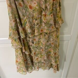 ASTR The Label Green Floral Asymmetric Ruffle One Shoulder Maxi Dress Size XL